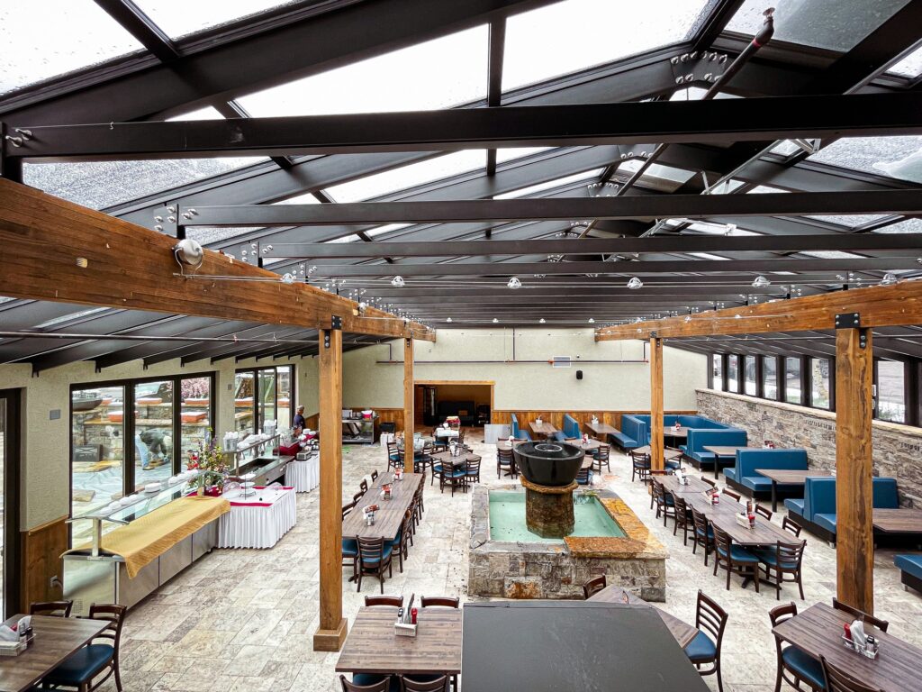 One of Mineshaft’s most defining features is its architectural design. The glass roof is not just a stylistic choice—it’s a statement about transparency, light, and connection to nature. Guests don’t just eat; they experience the view, the changing sky, and the mountain atmosphere that makes Ouray unique.